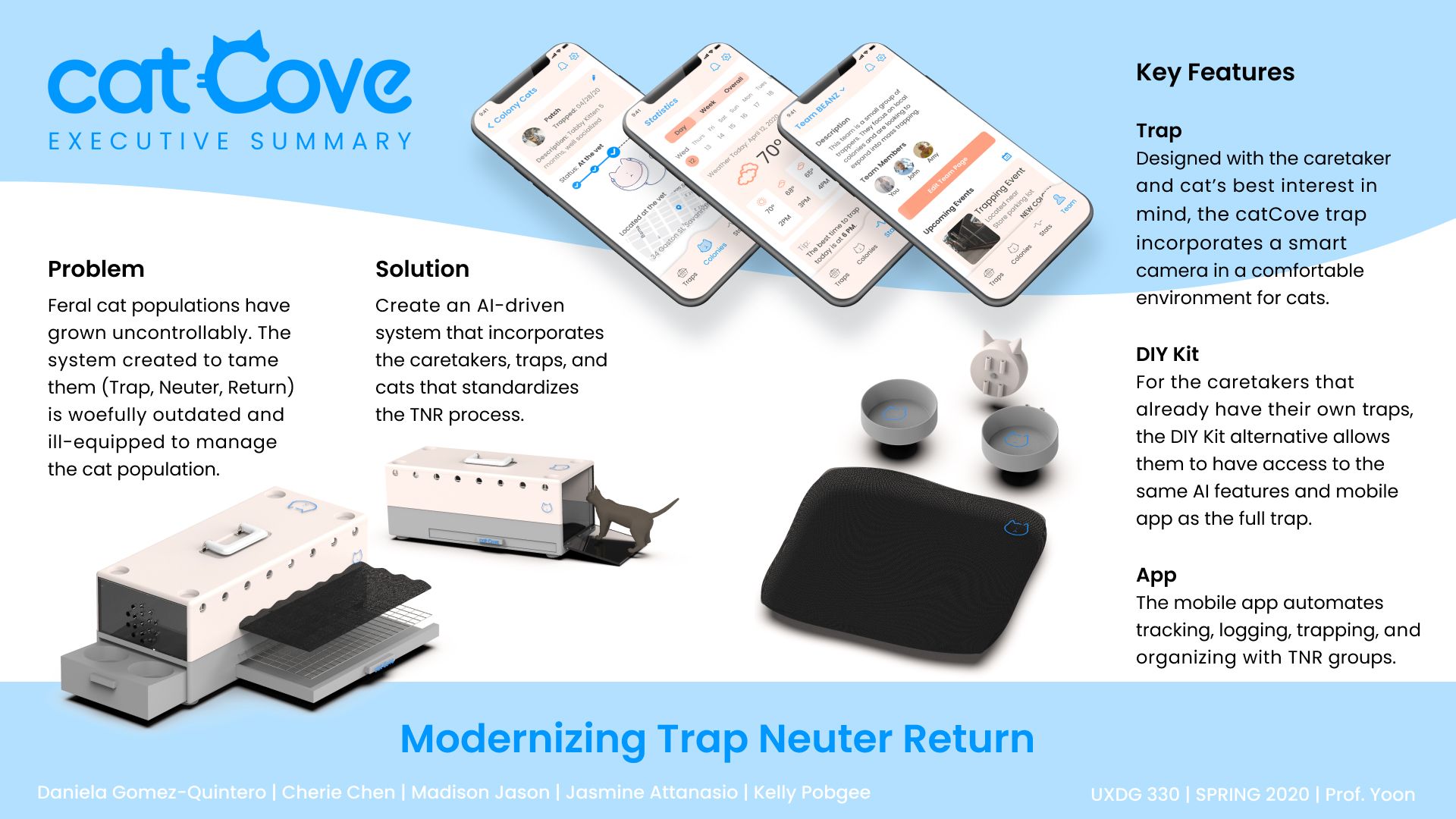 The main challenge we faced was tackling a digitally novel topic that doesn’t usually get a lot of love, nor attention. However, we were met with welcome arms from TNR and colony caretaker communities when we reached out for research and online interviews. In the designing process, we also had to keep in mind to balance all sorts of factors (comfort of caretaker, comfort of cats, affordable pricing, vet accessibility, and more).